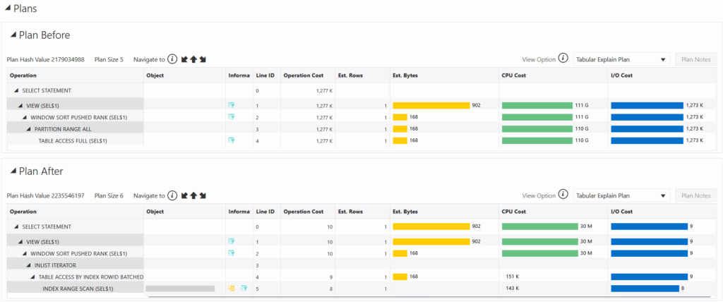Clicando em um SQL ID podemos ter mais informações sobre os ganhos alcançados: